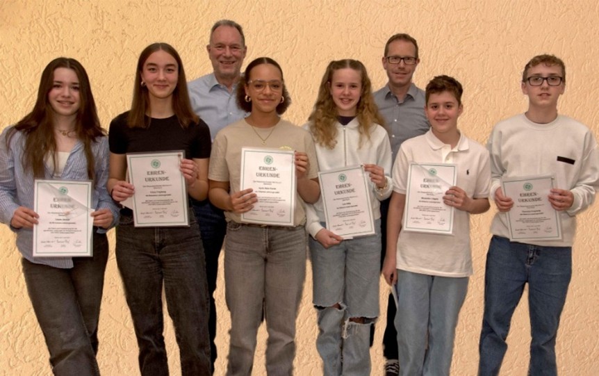 Die silberne Leistungsnadel mit Urkunde wurde überreicht an: Lea Attig, Ayda Nela Kiarie, Maximilian Hägele und Clemens Freyberg